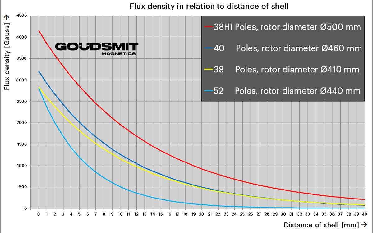 Einige der Wirbelstrommagnetrotoren von Goudsmit, wie der 22HI und der 38HI, haben eine HI-Magnetkonfiguration. Goudsmit zeichnet sich durch diese Technik aus, die extrem hohe Magnetkräfte erzeugt. Die HI-Magnetrotoren können daher auch für schwer zu verarbeitende Fraktionen oder schwer zu trennende Nichteisenpartikel verwendet werden.
