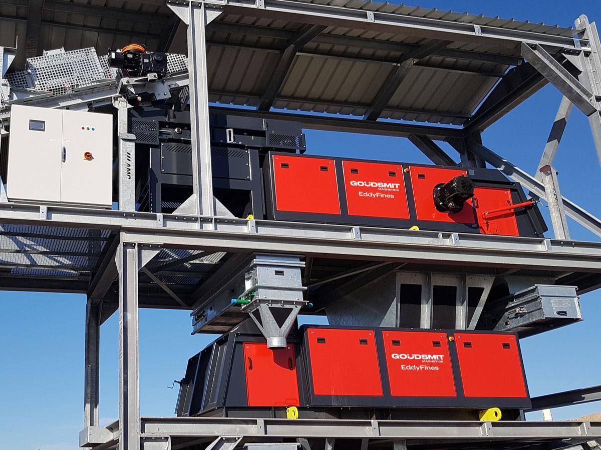 The drier the material, the more easily the metals can be separated. The finer the fractions are, the more difficult it is to separate the non-ferrous metals. Often, in the fine fractions, we place multiple eddy current separators in cascading order.