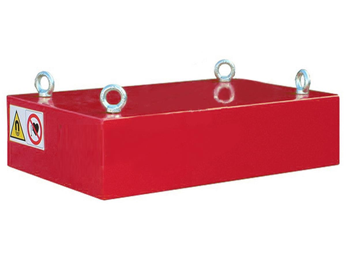 Cost-effective, but heavier, larger and less powerfull compared to neodymium plate/block magnets. Overbelt placement or installation against a free-fall line. Often used in the recycling industry or for protection of downstream equipment. Suitable for use at high temperatures, up to 100°C. Only for dry applications.