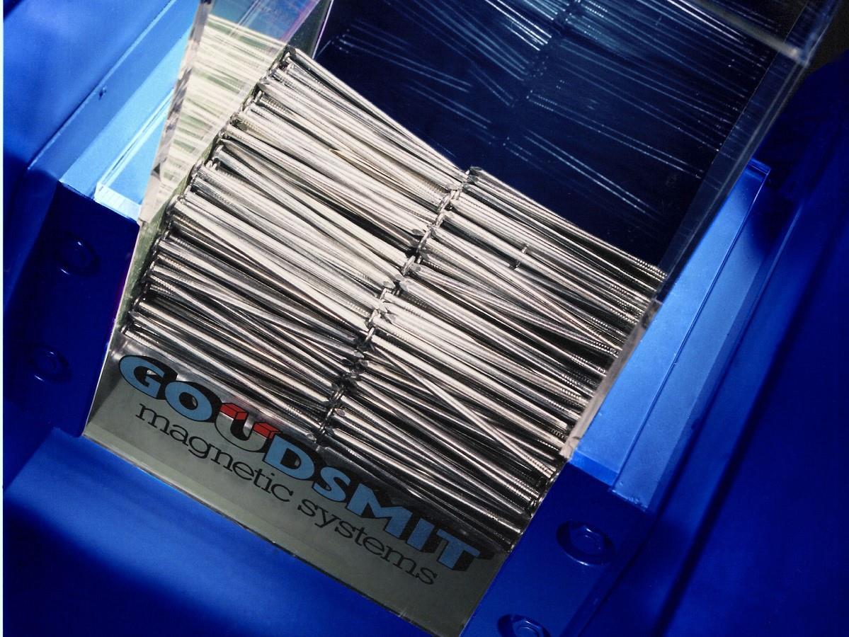 For dosed in-feed we suggest combining an orientation magnet with a magnetic feed conveyor.