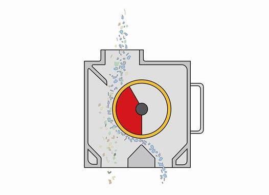 These drum magnets continuously and fully automatically separate ferrous particles, such as iron and steel. A drum magnet is a stationary (180°) magnet segment, with a stainless steel rotating drum. The magnet attracts magnetic particles that are in the product. The drum carries the attached particles with it to the bottom of the drum. There the particles drop off and can be collected and carried away. For strongly magnetic particles, carriers are placed on the drum to ‘push’ the separated ferrous particles out of the magnetic field for further discharging.