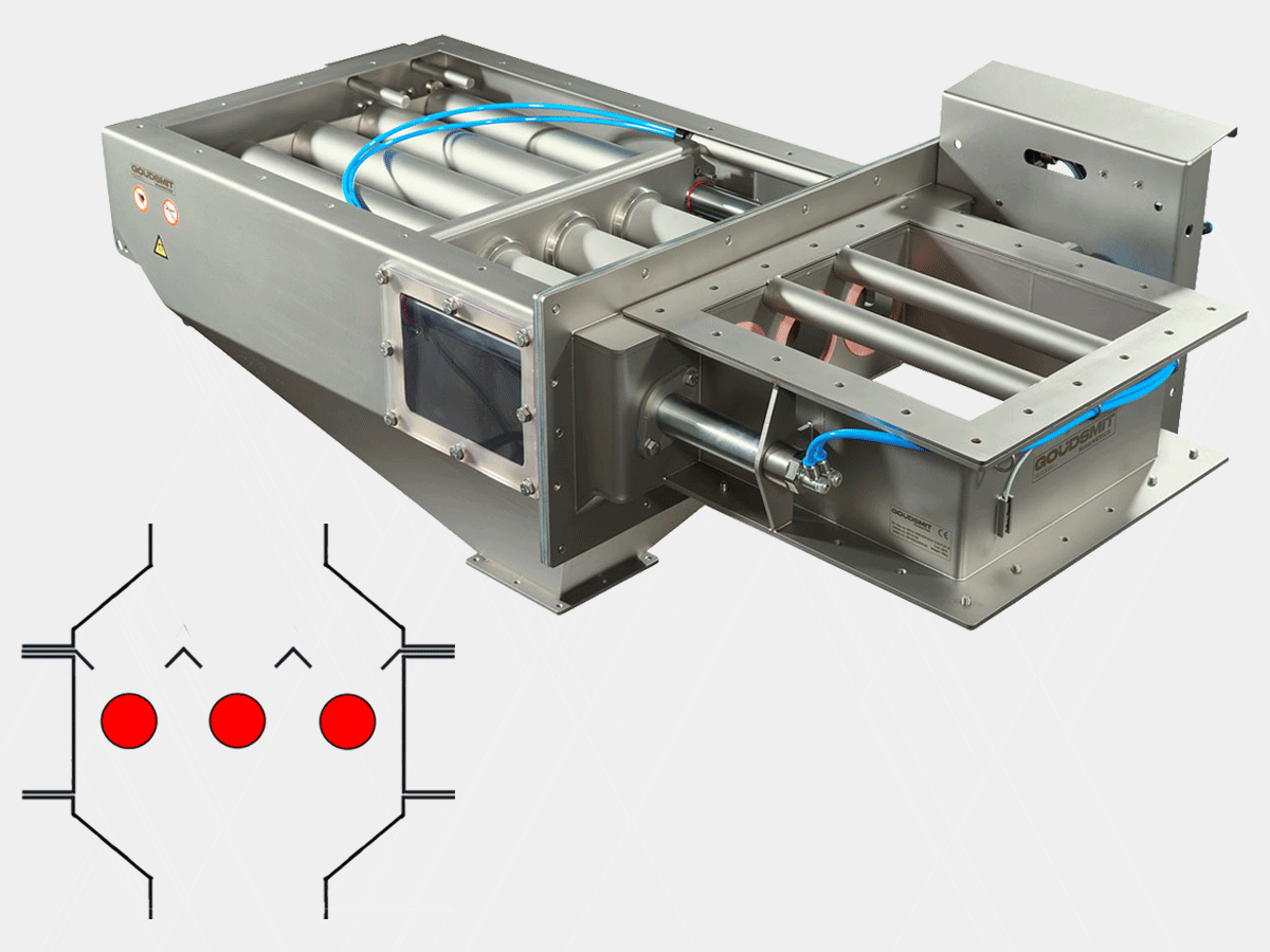 - Optional deflector grid for guiding the product towards the magnetic bars.