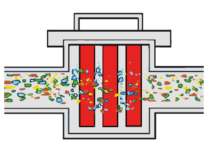 Working principle: filtering & discharging of ferrous contaminants