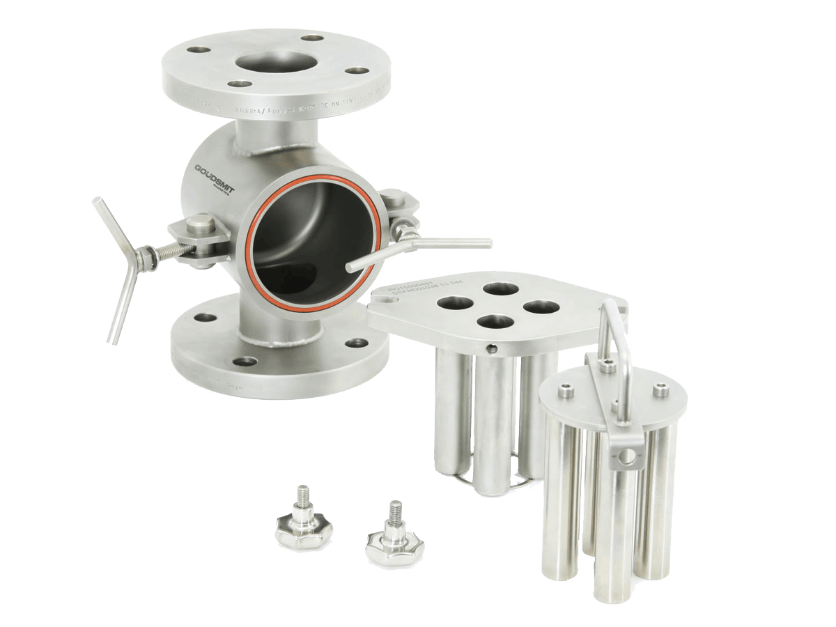 Robust filter for general industrial applications. For magnetic filtering of fine ferrous contaminants - such as stainless steel wear particles - from your liquid and powder flows in pressure pipes up to 10 bar.