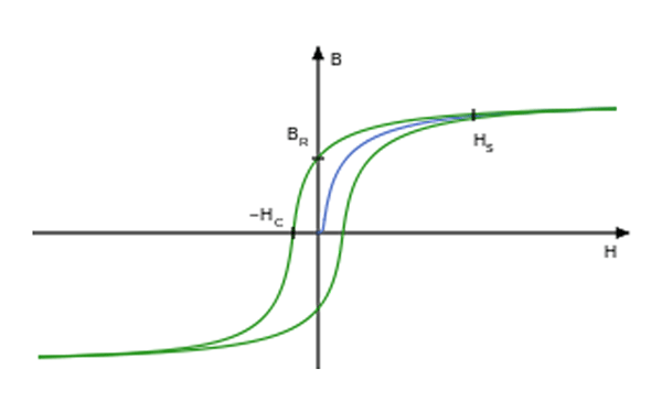 Cuando se aplica un campo magnético externo alterno periódicamente H, la magnetización de un material ferromagnético sigue una curva de magnetización. A partir del material 'vírgenes' sin magnetización de red, seguimos la curva azul la primera vez que hacemos esto (ver imagen a continuación).