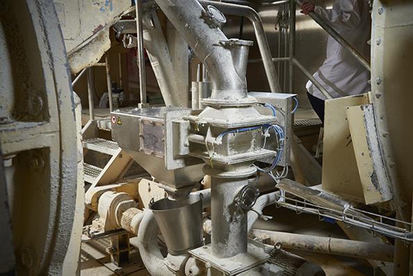 Das Sojapulver dient als Zutat für die Futtermittelindustrie. Das Pulver enthält winzige Metallpartikel und Edelstahlpartikel (Verschleißteile), die der Easy cleanflow-Magnet leicht entfernt. Edelstahl 316 ist besonders schwer zu entfernen. Dieser Magnet ist für große Produktströme geeignet und zeichnet sich durch eine sehr hohe magnetische Flussdichte von mehr als 12.000 Gauß an der Kontaktfläche der Stäbe aus. Durch den Einbau eines Ablenkblechs kommt das Produkt direkt mit den Stäben in Kontakt und der Magnet fängt sogar 60 % der schwer zu filternden Partikel des Edelstahl 316 auf. Der Magnet hat ein tiefes Magnetfeld und ist staubdicht bis zu einem Überdruck von 0,5 bar. Er verfügt über eine einfache elektrische/pneumatische Steuerung für eine benutzerfreundliche Reinigung.