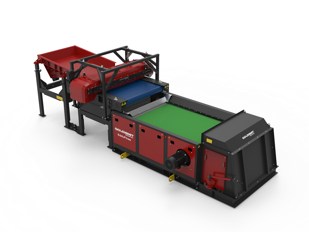 Dieser hochwertige 3-in-1-Metallabscheider ist für feine Materialien von 0 bis 15-20 mm ausgelegt. Er wird vor allem in der Kunststoffverarbeitung eingesetzt, aber auch WEEE und RESH sind wichtige Anwendungen, bei denen diese Magnettechnologie wertvollere Metalle aus dem Produktstrom extrahieren kann. In diesem Fall ist das Ziel die Rückgewinnung und nicht die Beseitigung der Metallverschmutzung. Wir haben uns für eine Kombination mit einem Überband- statt mit einem Magnettrommel-Abscheider entschieden, weil der erste Abscheider eine sauberere Endfraktion liefert, die besser vermarktbar ist. Bei Bedarf ist dieses modulare System auch ohne Überbandmagnet erhältlich.