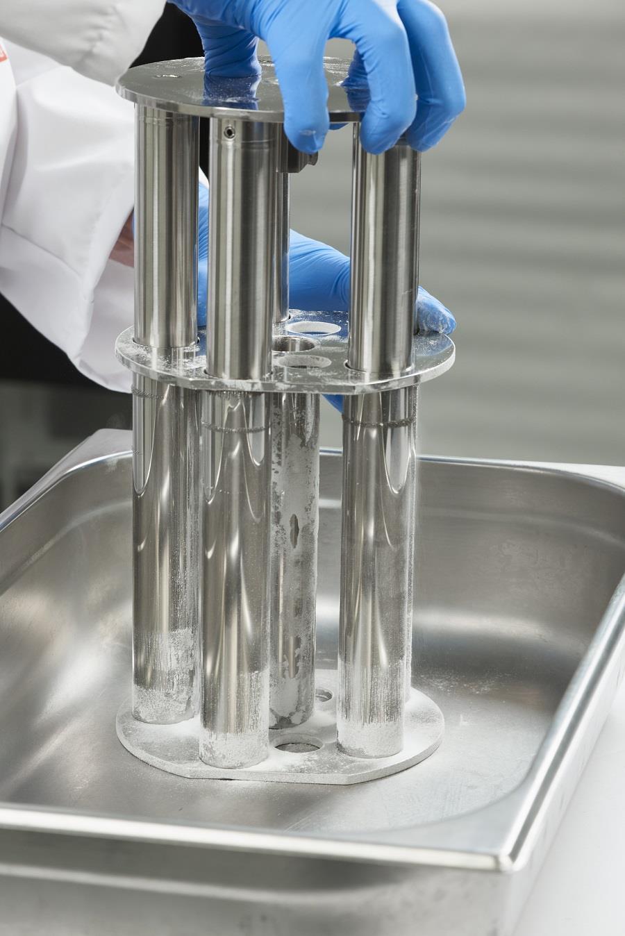 Bei der manuellen Reinigung nimmt der Bediener den Rotor aus dem Gehäuse und zieht die Magnetstäbe aus dem Extraktor, woraufhin sich die Metallpartikel lösen und sicher entsorgt werden können. Wir haben auch ein spezielles Reinigungssystem entwickelt, mit dem Sie den Extraktor leicht und hygienisch reinigen können.
