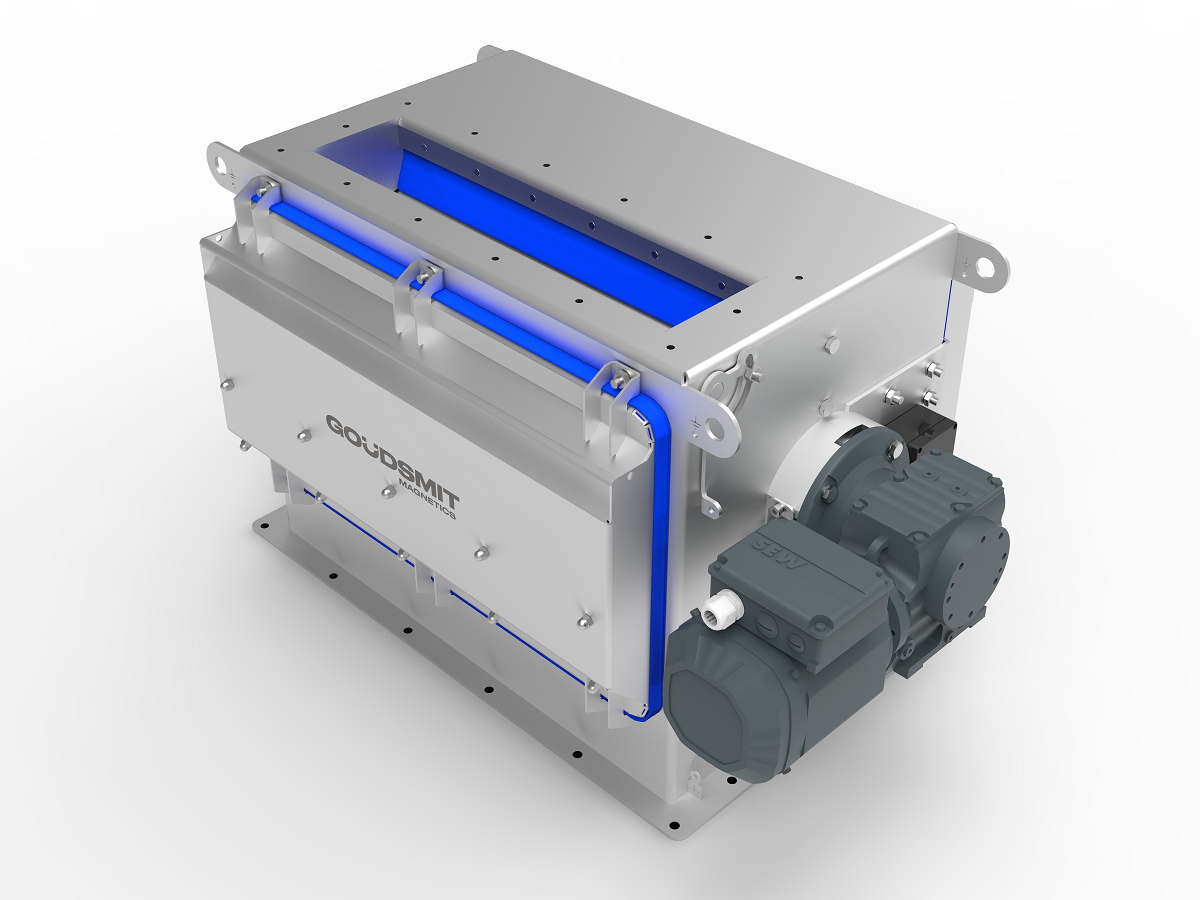 Recientemente hemos desarrollado una nueva serie de separadores magnéticos de tambor especiales para la ingesta de productos alimenticios. Estos imanes eliminan partículas férricas y partículas débilmente magnéticas de tan sólo 0,03 mm de productos granulados de caída libre en dicha industria. Las exigencias cada vez mayores en cuanto a fuerza magnética y certificaciones del material han llevado a este diseño modificado.
