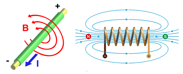 Autour d’un fil conducteur qui est traversé par un courant électrique, un champ magnétique est créé. La densité de flux magnétique (B) générée est exprimée en teslas (T), gauss (G = Vs/m2) ou weber (Wb/m2) :