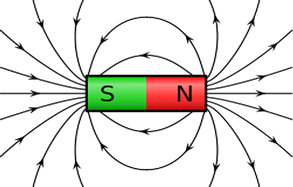 Des lignes de champ magnétique s’étendent à l’extérieur d’un aimant du pôle nord au pôle sud et à l’intérieur d’un aimant dans le sens inverse. Elles ne se croisent jamais. La densité des lignes de champ magnétique représente la force du champ magnétique, également définie comme la densité de flux.