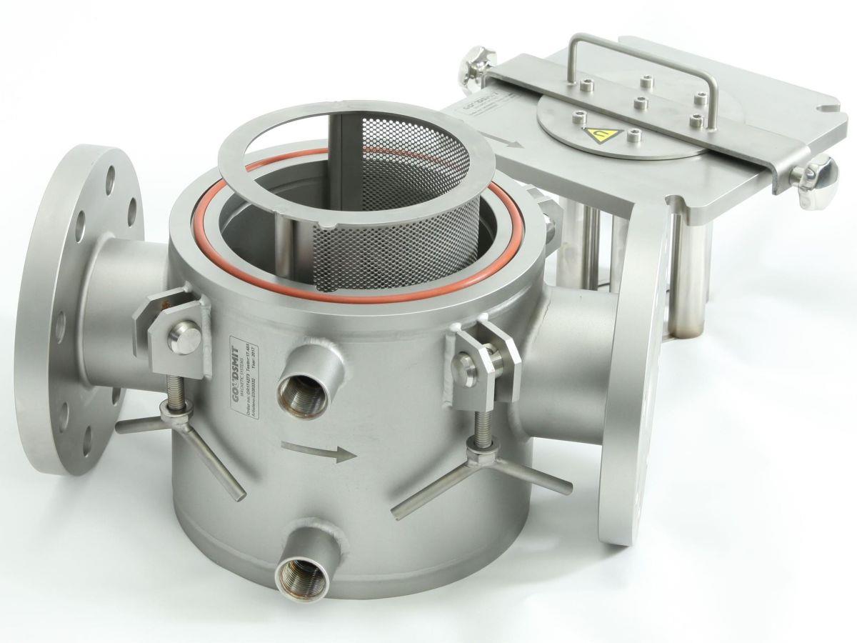Filtre robuste avec logement à double paroi chauffable pour éviter la solidification des produits visqueux comme le chocolat fondu. Nettoyage rapide manuel. Pour la filtration magnétique de petites quantités d’impuretés ferreuses de 30 µm à 2 mm, comme les particules d’usure en acier inoxydable, présentes dans vos flux de liquides et de poudres pressurisés.