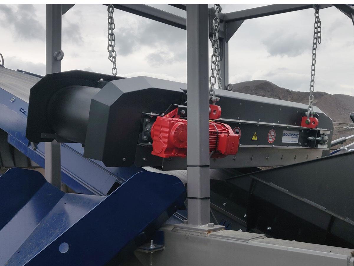 Op de Recycling in Gorinchem - Stand F120 - toont Goudsmit een recent ontwikkelde reeks mobiele bovenbandmagneten. De modulair opgebouwde magneten verwijderen ijzerdelen uit onderliggende materiaalstromen en zijn bestemd voor mobiele recyclingsystemen zoals shredders, brekers en zeefinstallaties. De magneetscheiders zijn opgebouwd met Ferriet of Neodymium magneten waarbij laatstgenoemde van een 2-pool naar een 3-pool systeem is ge-upgrade. Dit aangepast ontwerp zorgt voor een sterker magneetveld uit dezelfde hoeveelheid magneten. De compacte en sterke Neodymium 3-pool bovenband laat te scheiden ijzer meer draaien en trekt het los, zelfs wanneer het onder een berg materiaal ligt. Dit levert uiteindelijk een schoner product op en maakt dat er meer metaal teruggewonnen kan worden. Zo werkt de bovenbandmagneet:
