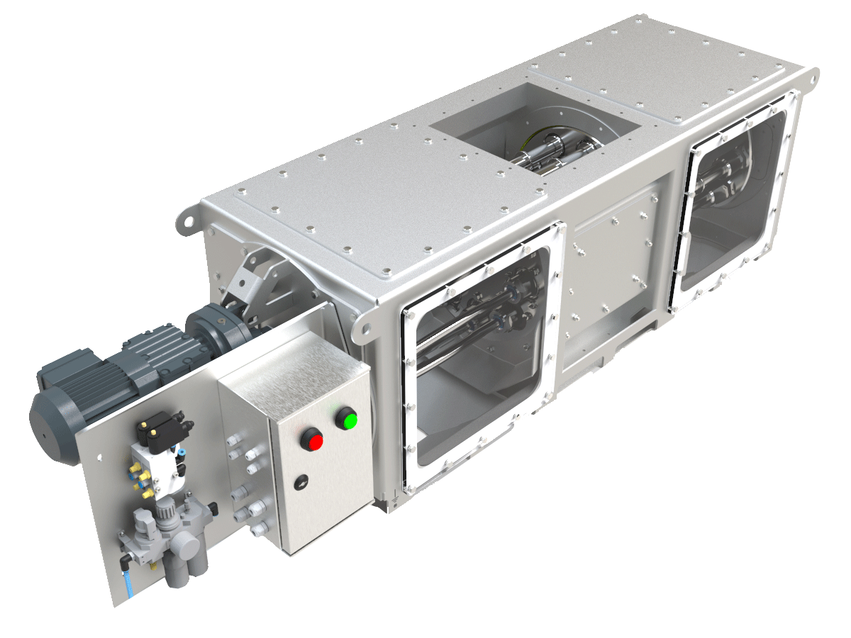 Dlatego też zaprojektowaliśmy ten nowy system w taki sposób, aby magnesy pozostawały w przepływie produktu podczas czyszczenia. Tylko zanieczyszczone metalem tuleje wokół prętów magnetycznych są usuwane wraz z cząstkami metalu, które są następnie zastępowane czystymi tulejami. Umożliwia to czyszczenie magnesu bez zatrzymywania produkcji.