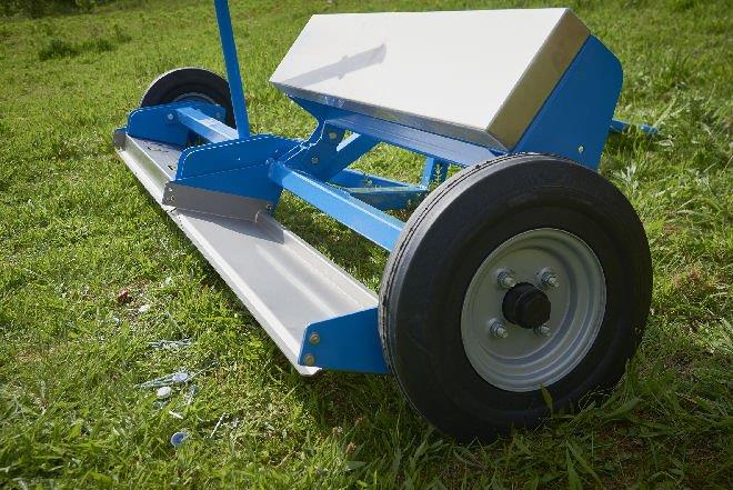 Następnie do tylnej części ciągnika New Holland mocuje się miotłę o szerokości 2,20 metra, która czesze ziemię z prędkością 10 km na godzinę Miotla magnetyczna jest wykonywana indywidualnie i ma taką samą szerokość ścieżki, co ciągnik. Posiada ona wytrzymały magnes ferrytowy o głębokości pola chwytania około 18 cm, w którym przywierają do niej wszystkie elementy. Miotłę można szybko wyczyścić za pomocą dwóch dźwigni, które obracają magnes, odsuwając go od płyty ze stali nierdzewnej, co powoduje uwolnienie kawałków metali żelaznych, które następnie wpadają do pojemnika.